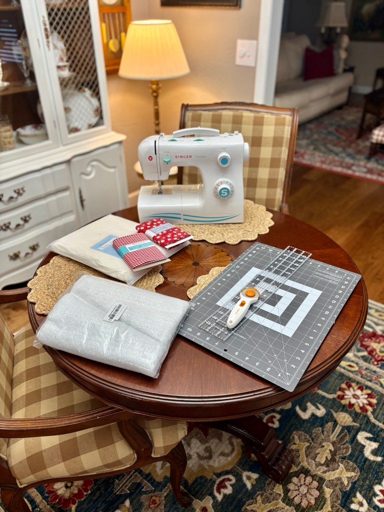 Last week, I bought a sewing machine, picked up some fabric, and spent time watching YouTube tutorials. I’m hoping to start making wreath sashes to offer in my shop. Before I get there, though, I think I’ll try my hand at some potholders to test my sewing skills.